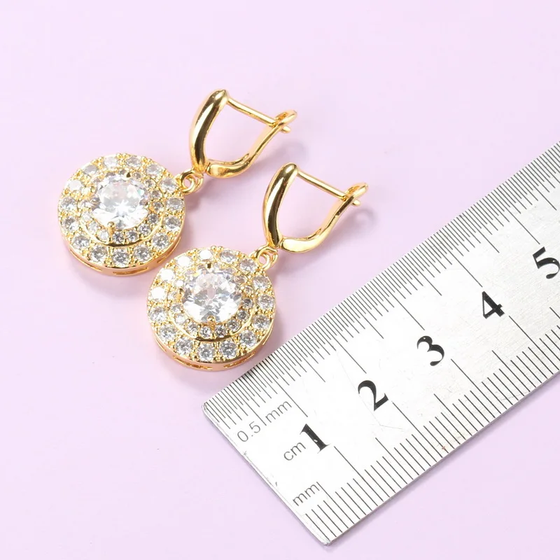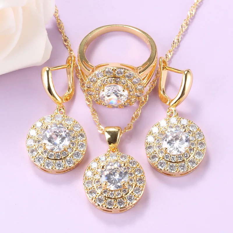 Набор из 3-х предметов, круглое ожерелье и серьги из белого циркония, золотого цвета, африканские бусы, набор украшений для женщин