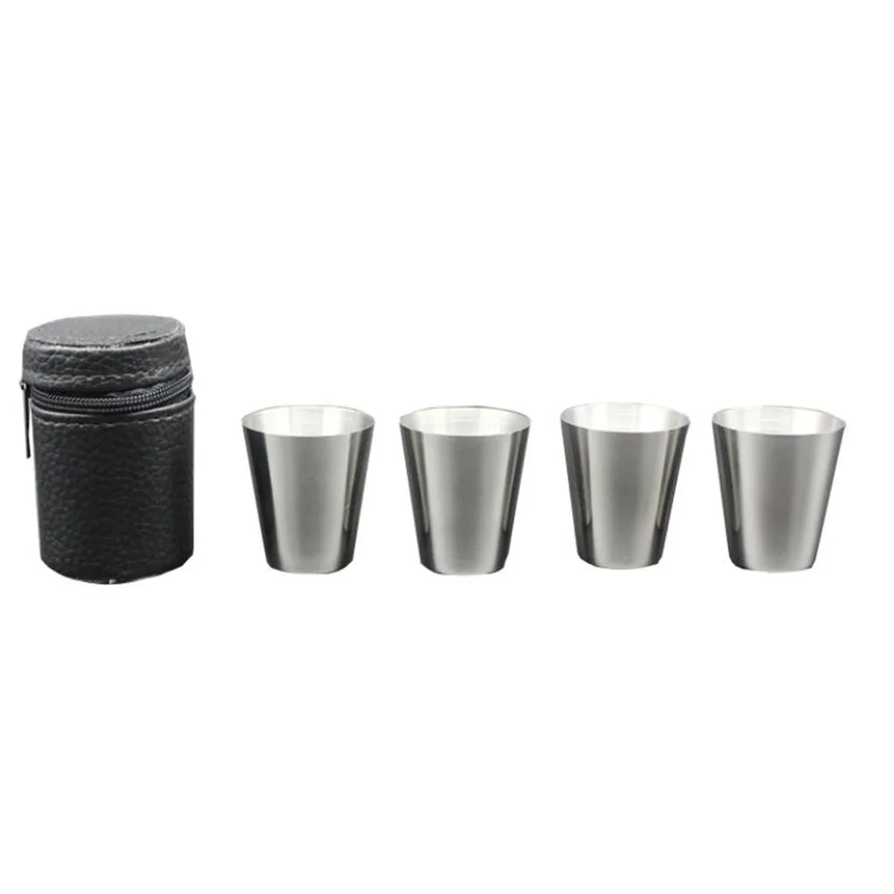 4 шт.компл. полированные 30 мл мини стаканы из нержавеющей стали для питья вина бокалы с кожаным чехлом Сумка Для Дома кухни бара