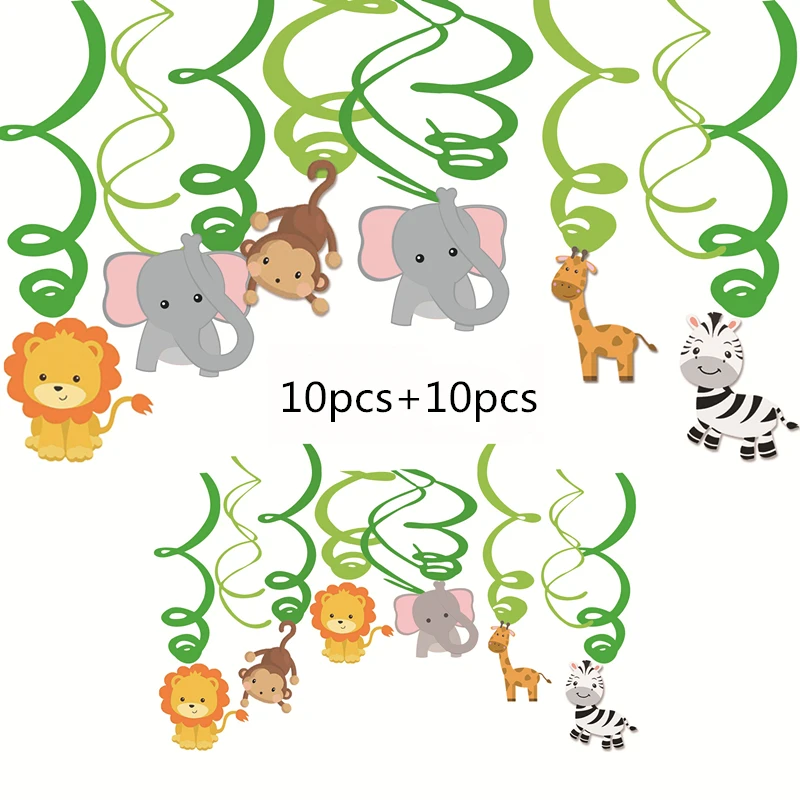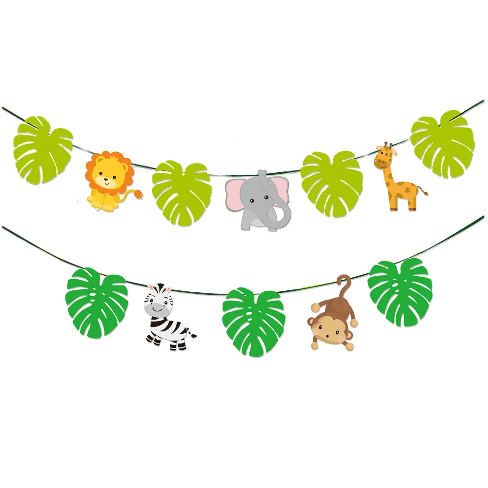 Зеленый лист животные день рождения тянуть флаг мультфильм Животные жираф слон Зебра алюминиевый шар День рождения баннер торт карты fores