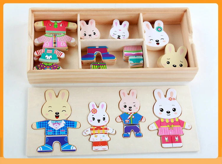 Детский мультяшный пазл, игрушка, кролик, медведь, платье, сменная головоломка, игрушка для монтессори, развивающая сменная одежда, игрушки, подарки