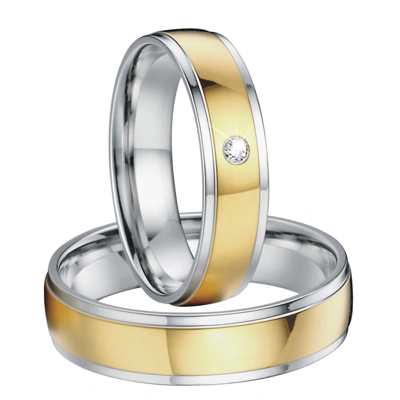 Роскошные обручальные кольца из титана и настоящего золота 14 к для мужчин и женщин, свадебные кольца для влюбленных, ювелирные изделия, кольцо на палец