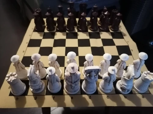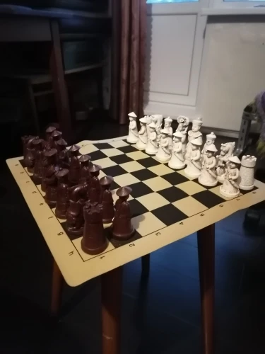 заказ пришел довольно быстро. Фигурки крупные, как и описано, приятно лежат в руке, дизайн симпатичный. Что не понравилось: есть огрехи в отливке, их не почистили, "доска", конечно не кожа, а дешевенький кожезаменитель ну и для таких понтовых шахмат конечно было бы неплохо подклеить войлок на низ фигур. Вещь совсем не дешевая, могли бы довести до ума