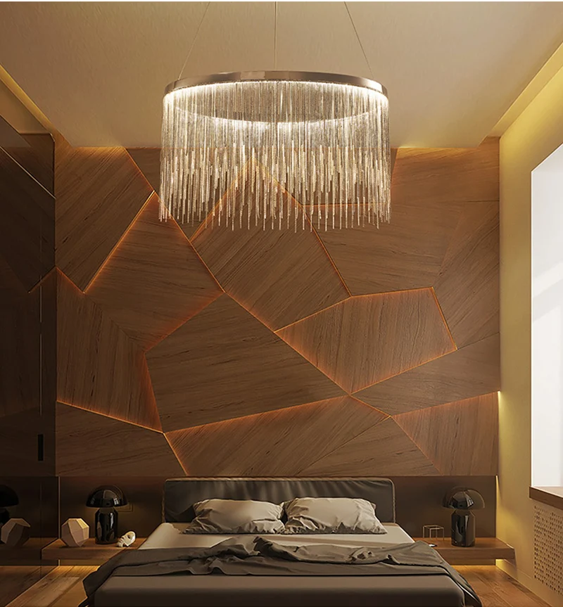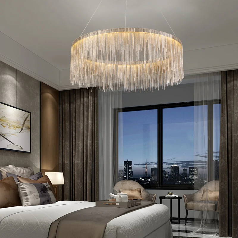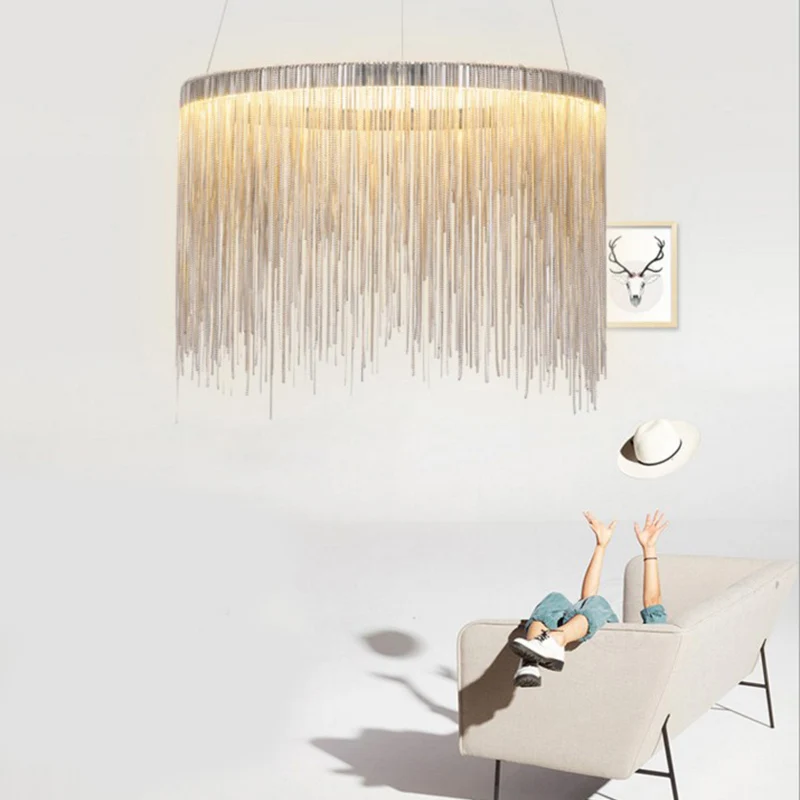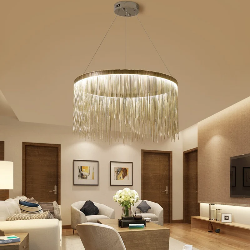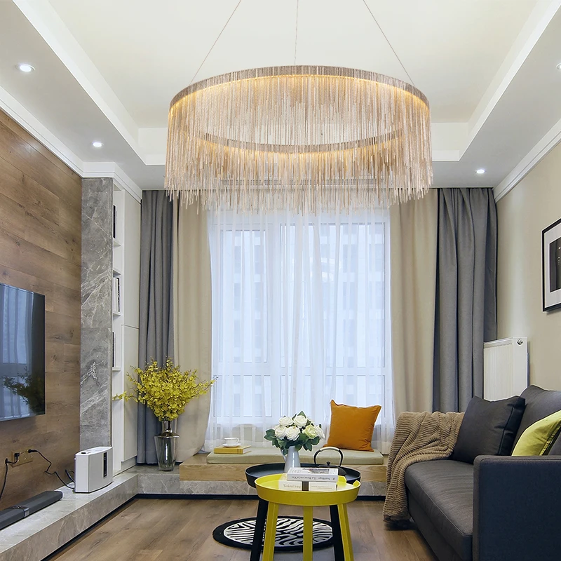Алюминиевые подвесные светильники с кисточками, круглый светодиодный светильник с регулируемой яркостью для гостиной, светодиодный тное светодиодное освещение