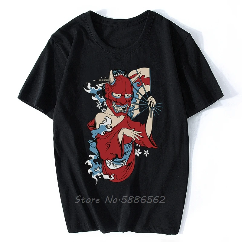 Японское кимоно гейши с Oni маской демона, Мужская футболка, новинка, летняя белая мужская повседневная футболка с коротким рукавом, уличная одежда унисекс
