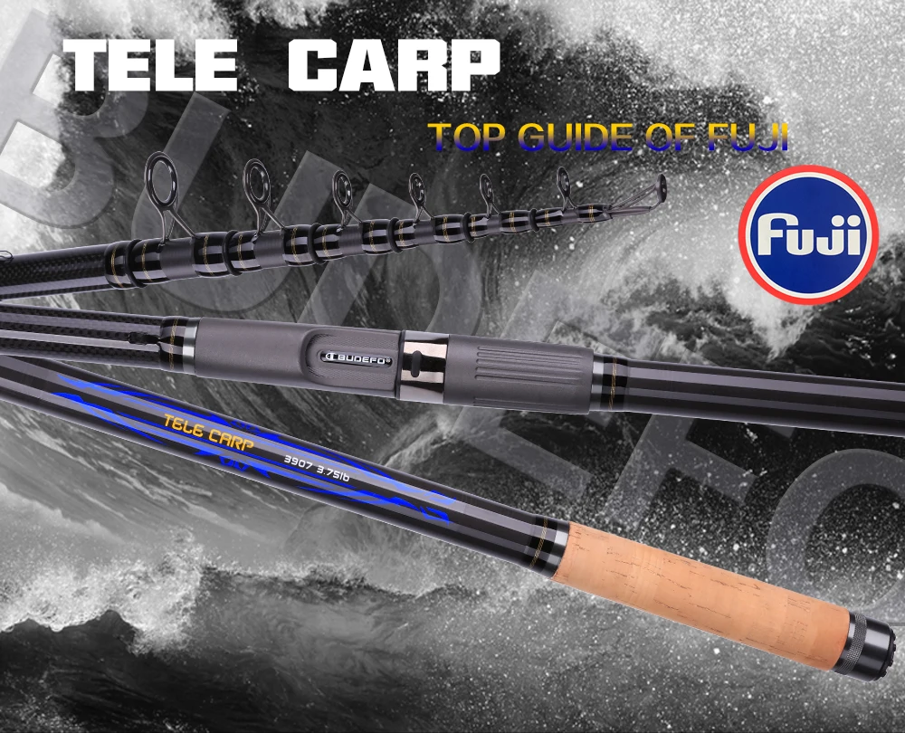 Телескопическая удочка BUDEFO для ловли карпа, 3.75lb3.03.33.63 м, карбоновое спиннинговое удилище для путешествий, FUJI guide power60-180g, удочка для серфинга
