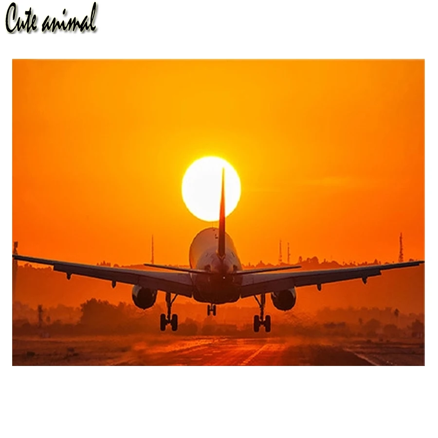 Самолет восход пейзаж Алмазная вышивка 5d полная дрель квадратная Алмазная картина Стразы Вышивка крестом наклейки для домашнего декора