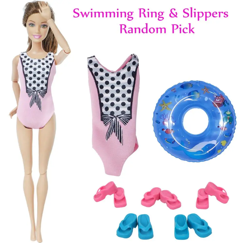 7 шт.компл. = 1 шт. купальники для кукол, пляжный купальный костюм + 5x случайных тапочек + 1 шт. случайных купальных колец, аксессуары для кукол Барби