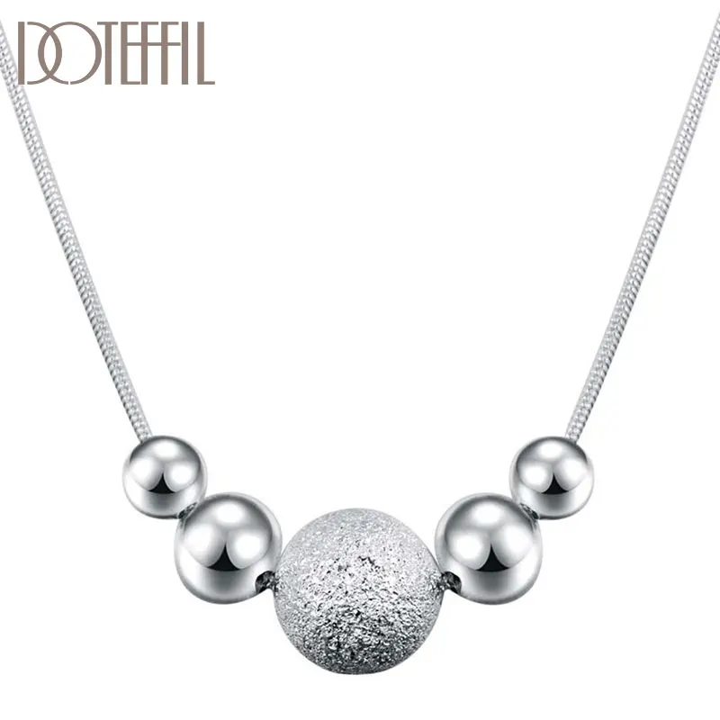 DOTEFFIL, серебро 925 пробы, 18 дюймов, цепочка под змеиную кожу, матовые, гладкие, пять бусин, ожерелье для женщин, модное, свадебное, очаровательное ювелирное изделие