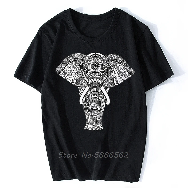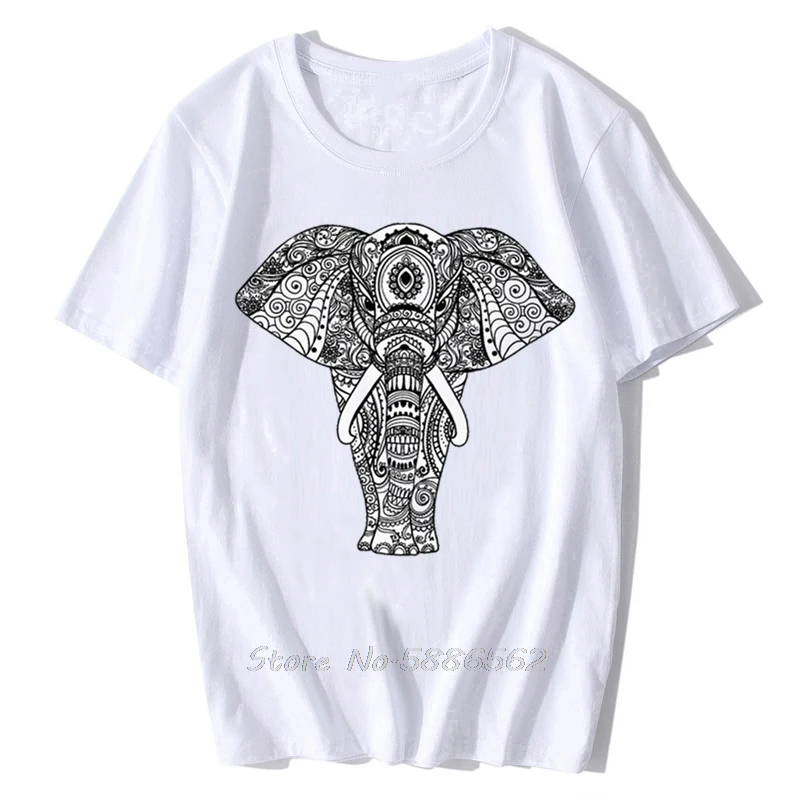 Художественная футболка с мандалой и слоном, мужская летняя новая белая Повседневная крутая футболка, Мужская футболка, футболки в стиле Харадзюку