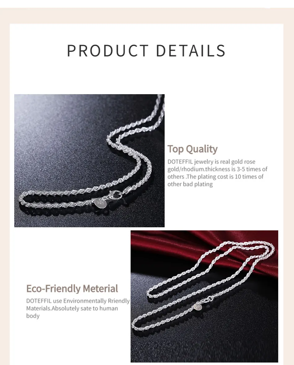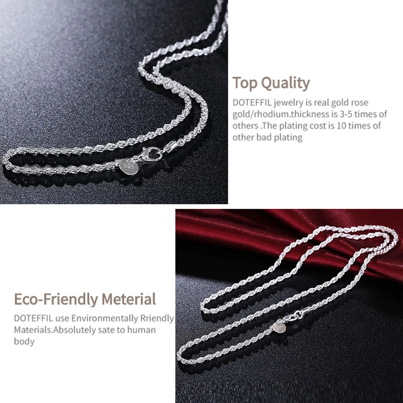Цепочка-ожерелье DOTEFFIL из серебра 925 пробы, 1618202224 дюйма, 3 мм