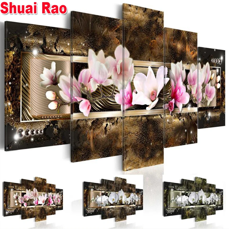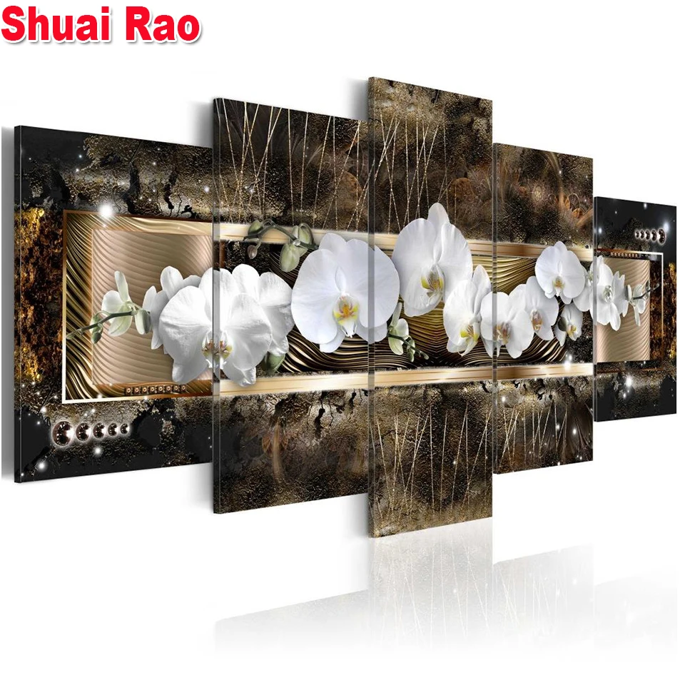 Алмазная краска, 5 штук, орхидеи, алмазная вышивка 5d, сделай сам, Алмазная мозаика, алмазная краска, цветы, цветок, полная дрель, круглая, искусство