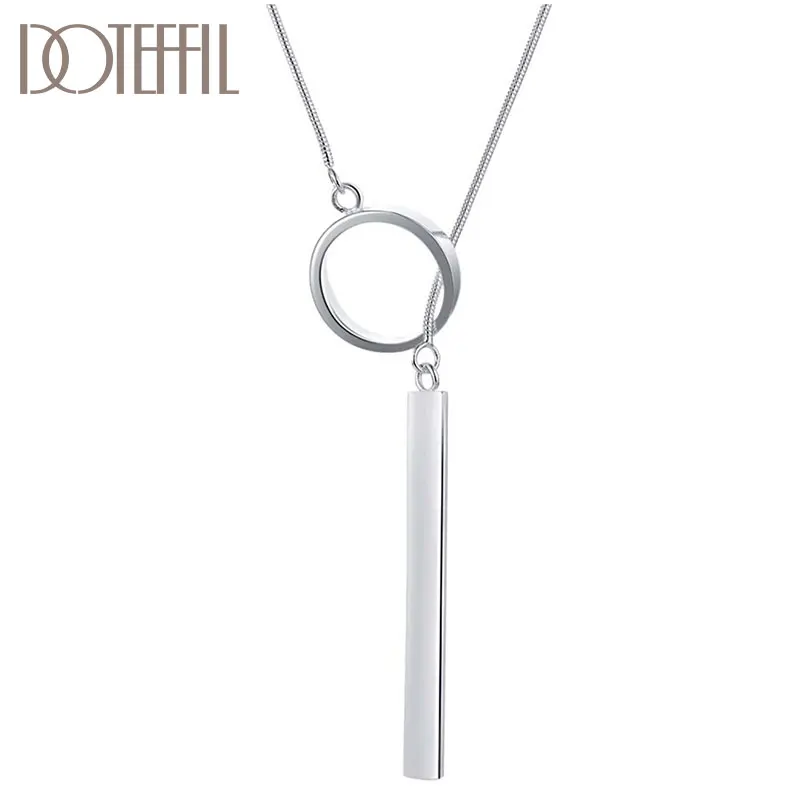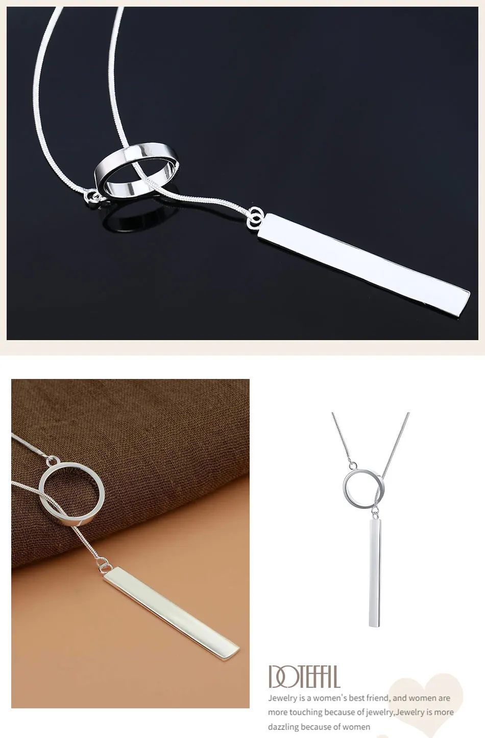 DOTEFFIL, серебро 925 пробы, 18 дюймов, цепочка под змеиную кожу, прямой круг, подвеска, ожерелье для женщин, модное свадебное очарование, ювелирное изделие