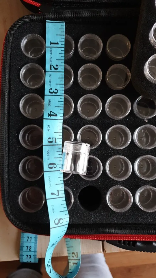 Отправка и доставка быстрые. Товар пришёл с повреждённым лотком, продавец вернул часть средств. Упаковка слабенькая, поэтому возможны вмятины на корпусе кейса. Заказывал на 60 баночек, а наклеек с цифрами только 50. Ну может больше и не надо. Сам кейс хороший. Для работы будет удобно. Продукт рекомендую.