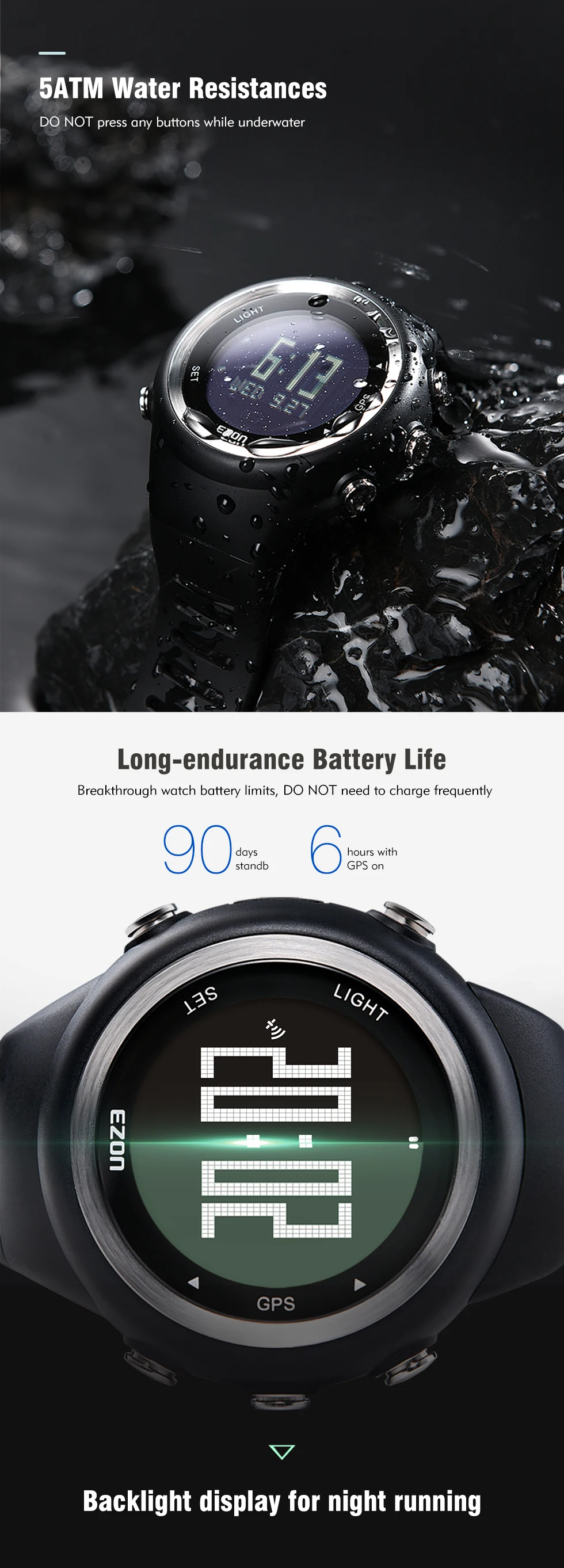 Ezon T031 GPS синхронизации цифровые часы Открытый Спорт Многофункц...