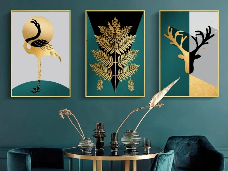 Абстрактная картина золотого холста с оленем, Большие плакаты и при...