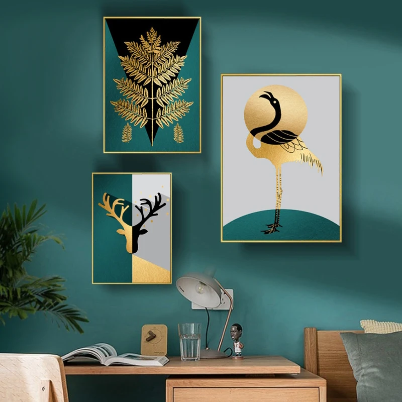 Абстрактный плакат с золотым оленем и фламинго, настенный плакат, современный Новозеландский стиль, декоративные картины ламы принты для домашнего декора 5-46