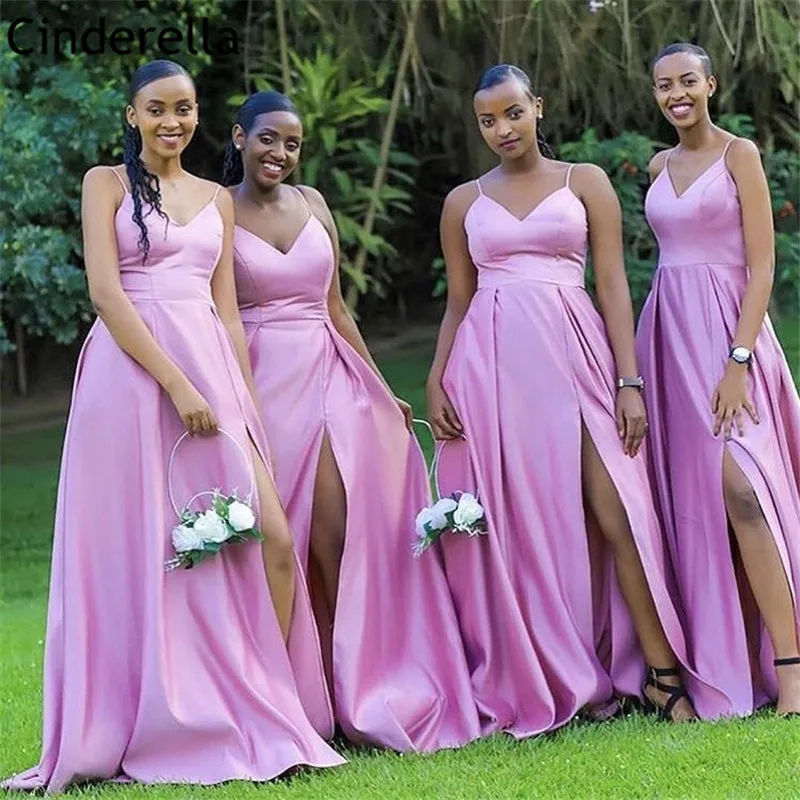 Платья для подружек невесты, в пол, на тонких бретелях, с Боковым Разрезом, 2021, с молнией сзади, свадебные платья для вечеринки, атласные платья свидетельницы