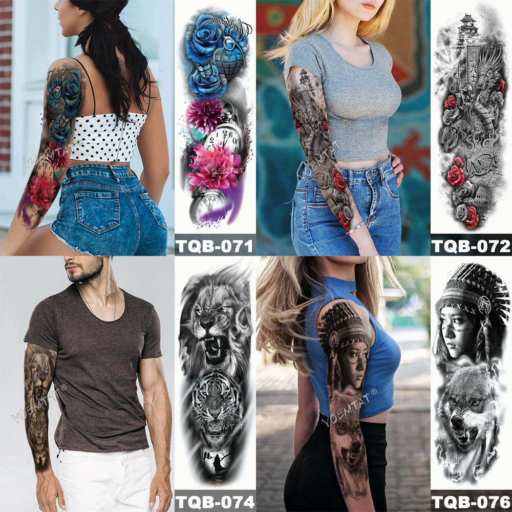 Тату-наклейка с большими рукавами для мужчин и женщин, временная во...