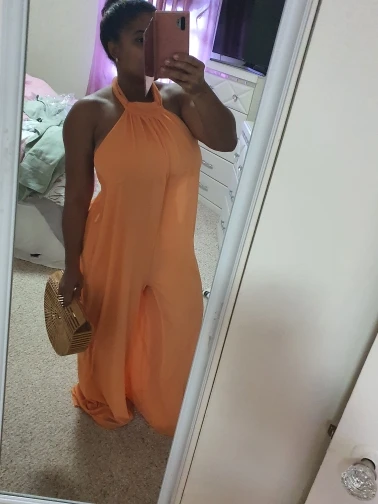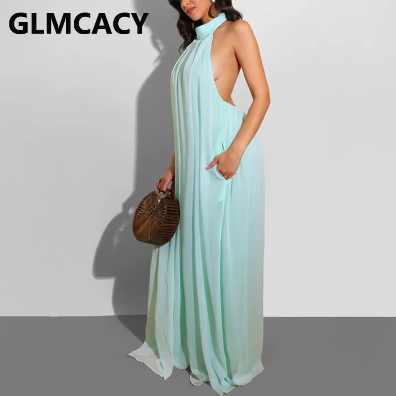 Женские шифоновые Комбинезоны с лямкой на шее, свободные стильные длинные Комбинезоны с открытой спиной, элегантные аксессуары