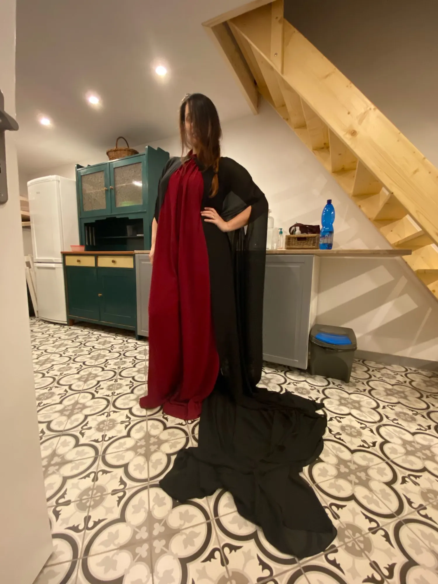 Хорошее качество, точно как на картинке, красивый цвет, я рекомендую вам, если вы слишком маленький, он сильно тянется на земле, в противном случае, как описание для большего, он отличный