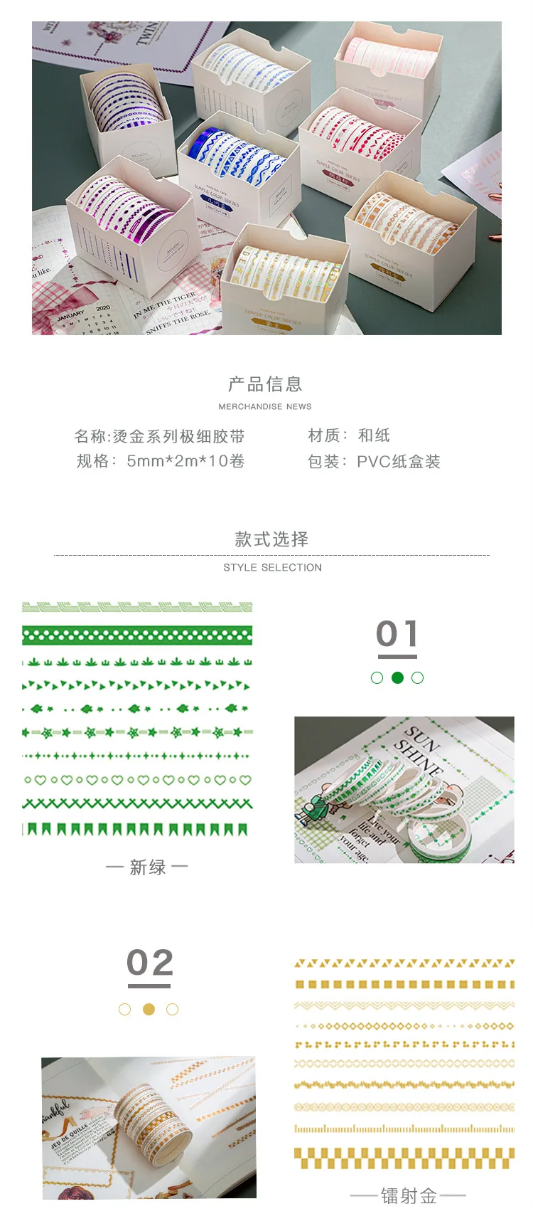 10 рулонов золотой тонкий набор декоративного скотча Васи фольги маскирующие ленты для скрапбукинга Diy Ремесло Декор Размер 5mm2m