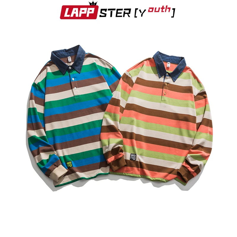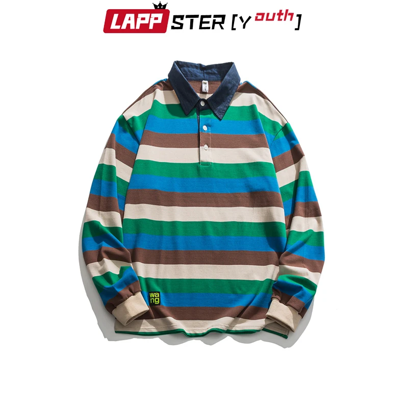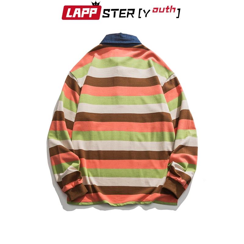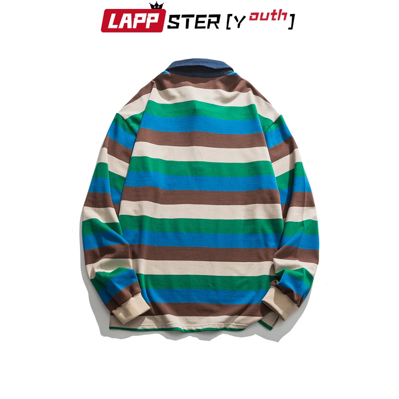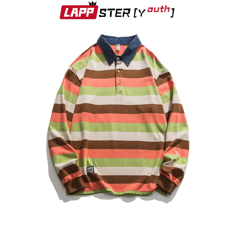 Толстовка LAPPSTER-Youth в полоску в стиле Харадзюку, осень 2021, корейская мода, винтажный стиль, свитшоты, отложной воротник, Повседневная Толстовка