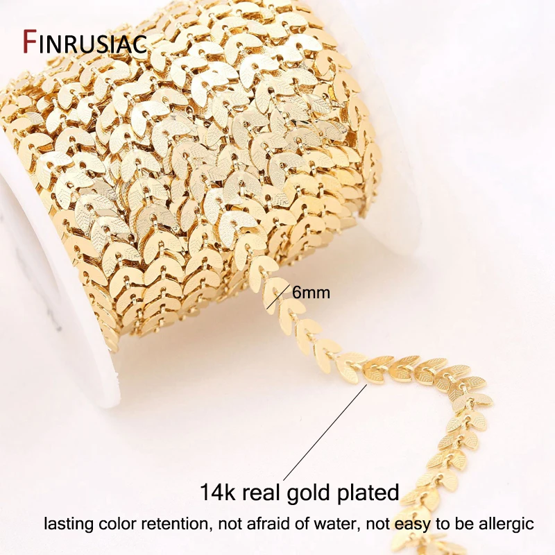 Материалы для изготовления украшений 14 к позолоченная латунная цепочка с листьями, для самостоятельного изготовления ювелирных изделий, ожерелье, серьги, браслеты, катушка