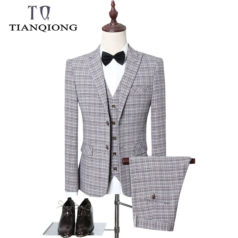 Элегантные мужские клетчатые костюмы TIAN QIONG из 3 предметов, син...
