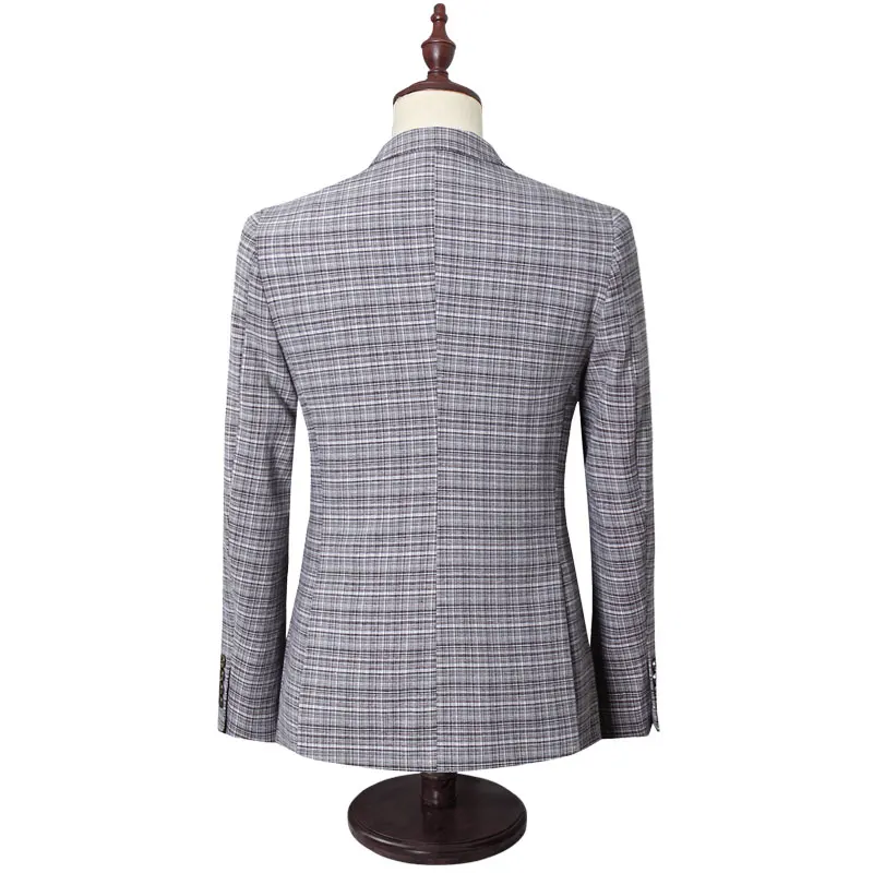 Мужской деловой костюм, серого цвета, в клетку, облегающий, смокинговый, Свадебный, на заказ, 3 шт.
