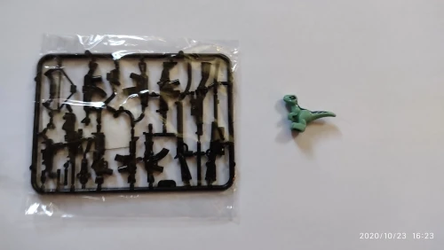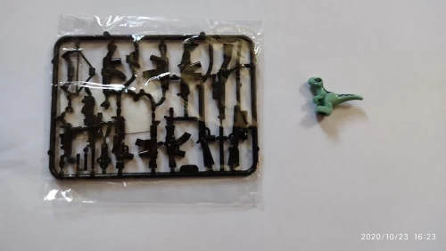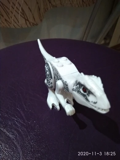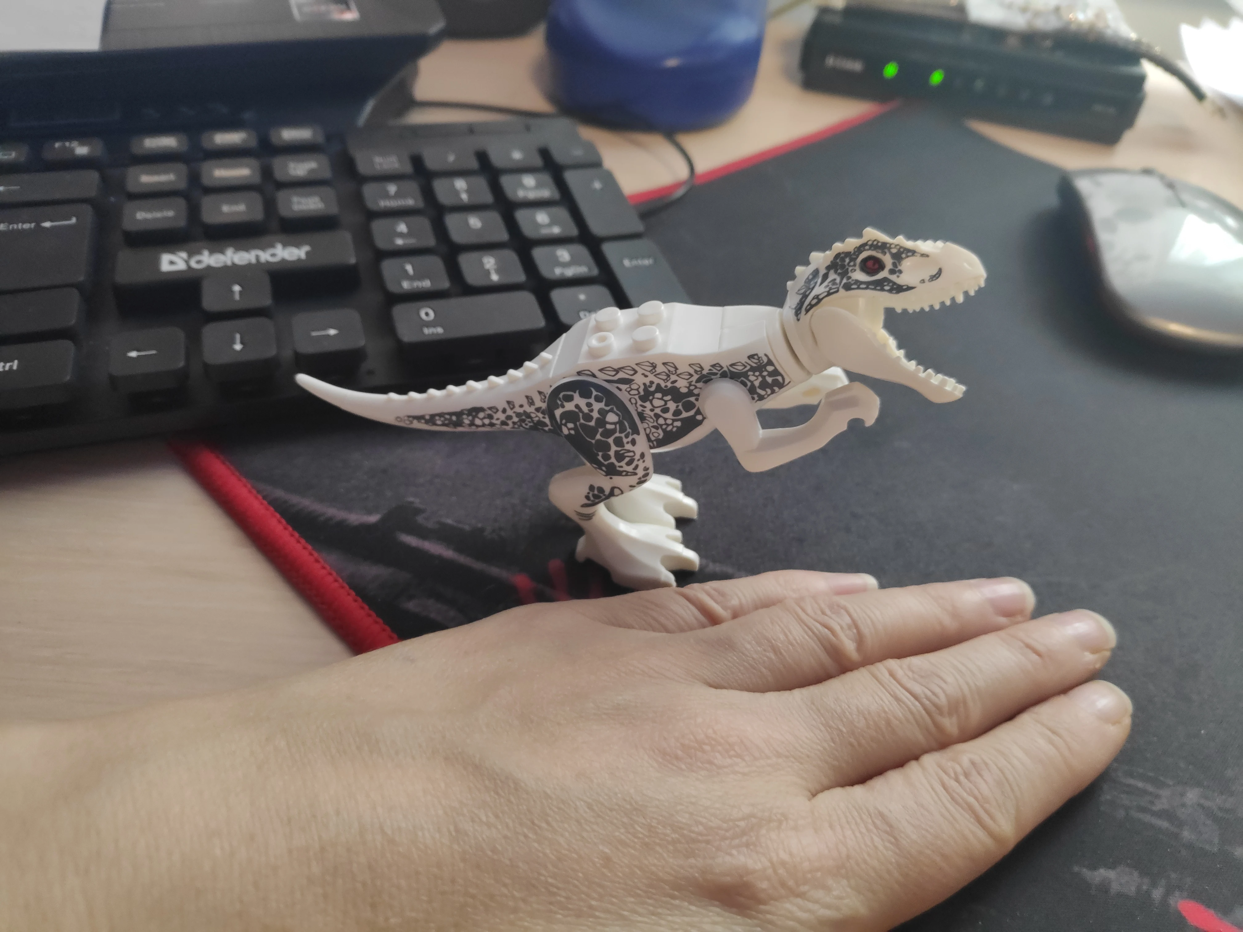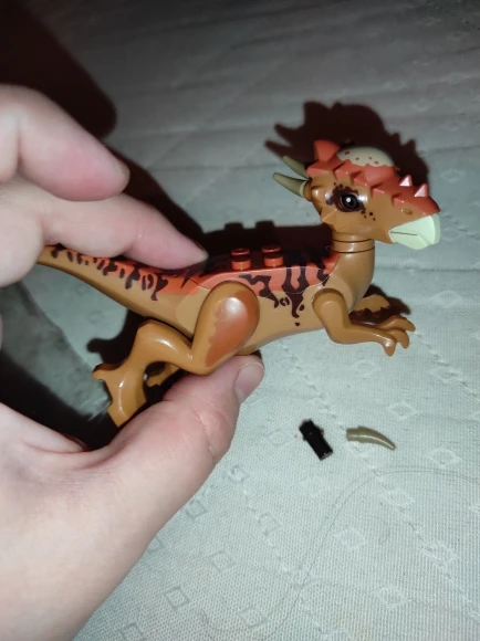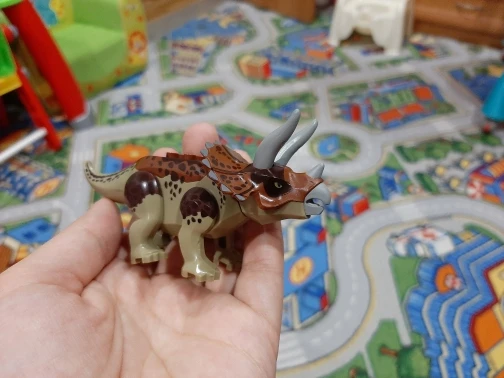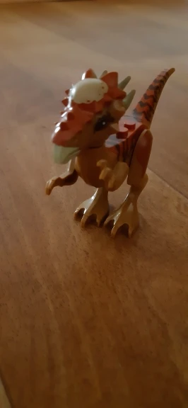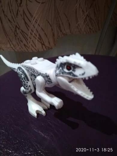 Все как на фото,хороший динозаврик,можно поставить на Лего платформу.Милая игрушка маленького размера в высоту пару сантиметров и немного побольше в длину.Спасибо продавцу!