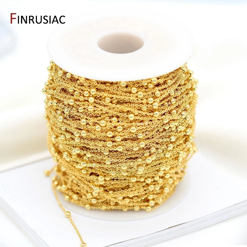 Цепочки с шариками для изготовления ювелирных изделий, цепочки с покрытием из настоящего золота 14 карат сделай сам, ожерелья, браслета, серег, аксессуары, 3,5 мм2 мм