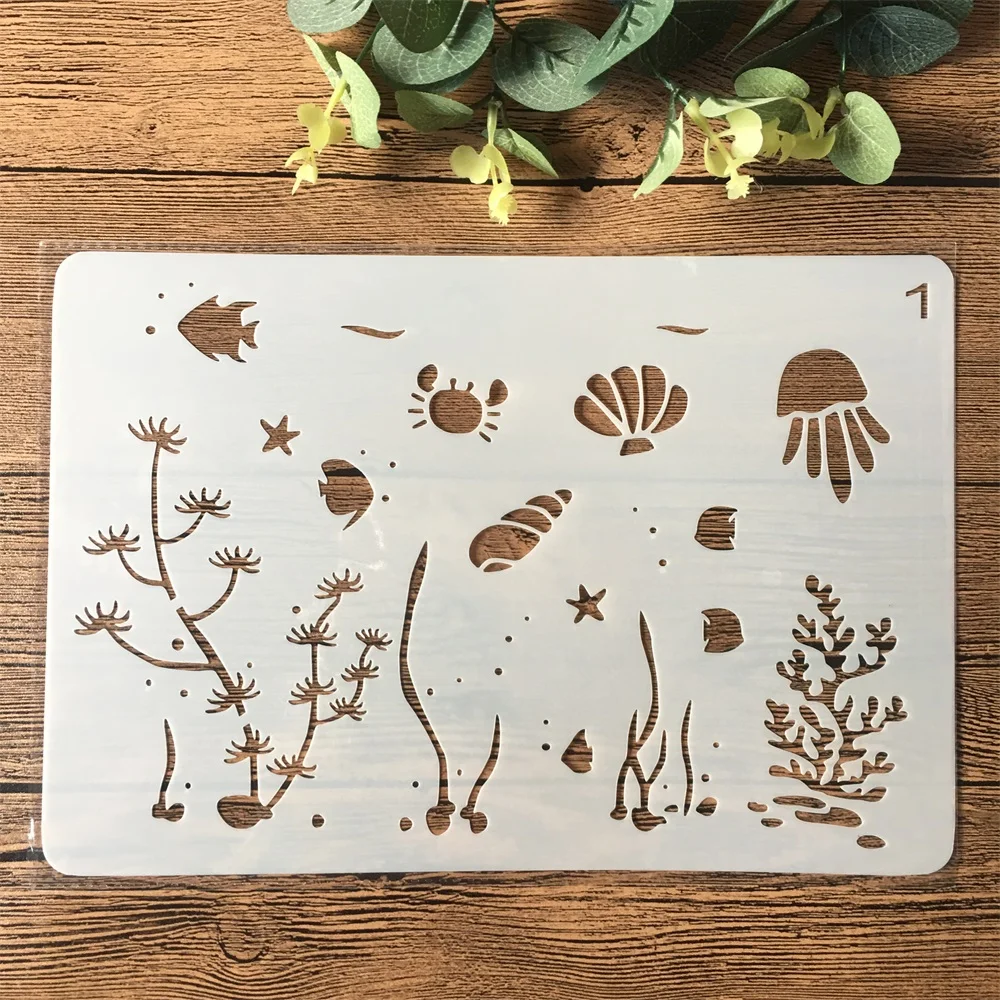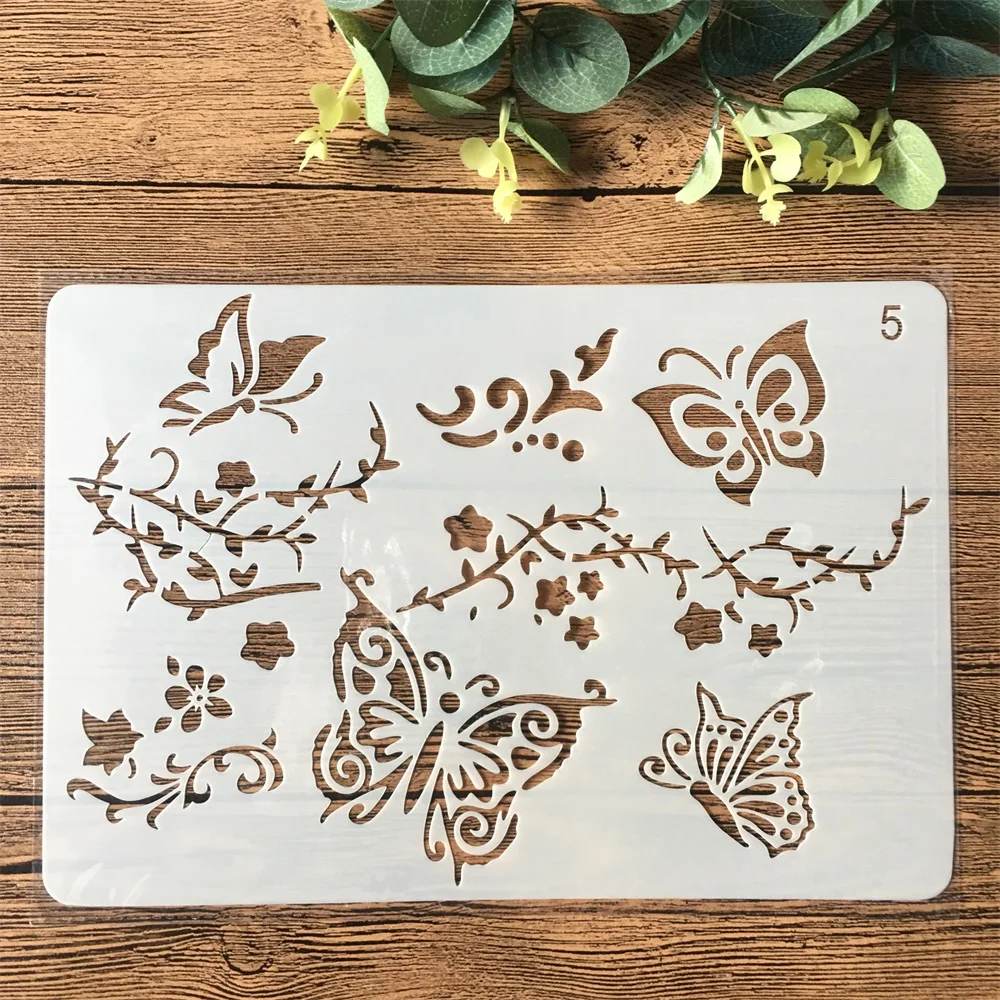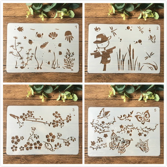 4 шт.компл. 26 см морской цветок бабочка DIY трафареты для наслоения живопись штампованная для скрапбукинга тиснильный альбом шаблон бумажной карты