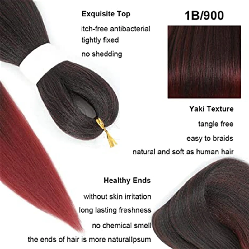 Так много цветов вы можете выбрать свободноПредварительно растягивающиеся плетеные волосы изготовлены из высококачественного низкотемпературного огнеупорного синтетического волокна с текстурой Яки.