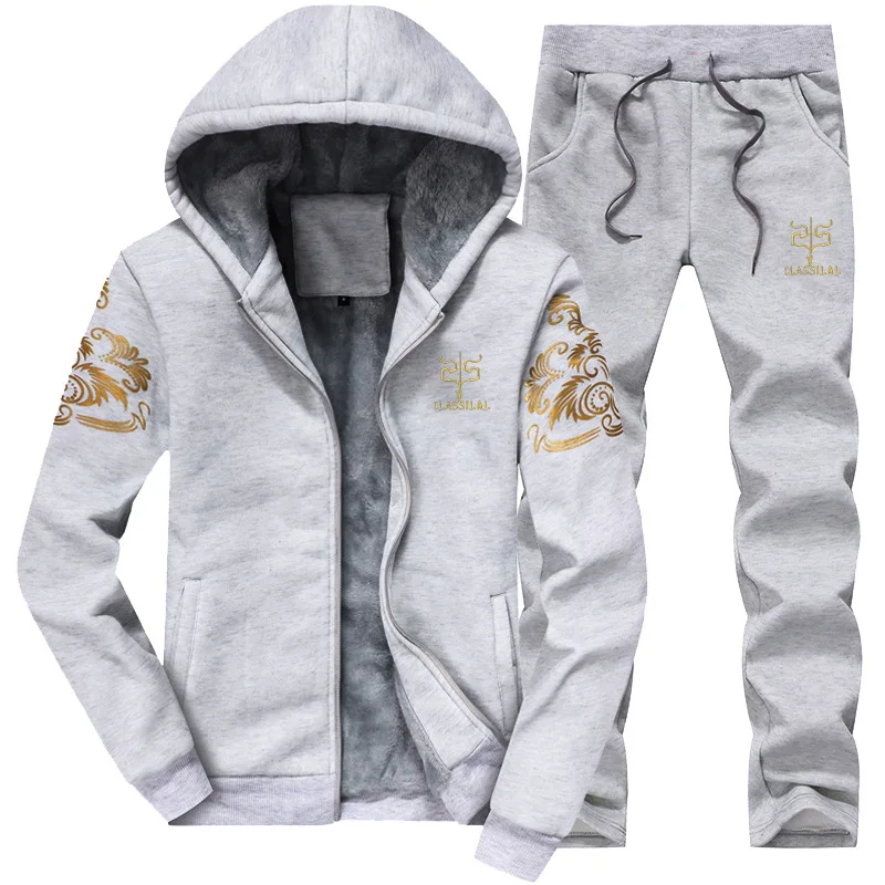 Мужской спортивный костюм из 2 предметов, Повседневная теплая толст...