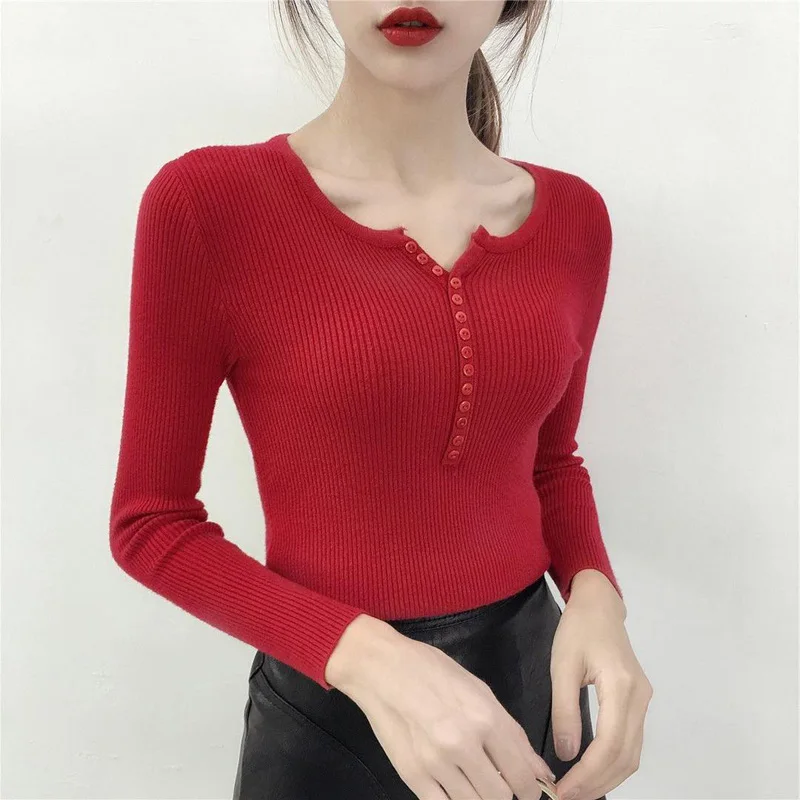 Женский трикотажный пуловер с длинным рукавом и V-образным вырезом