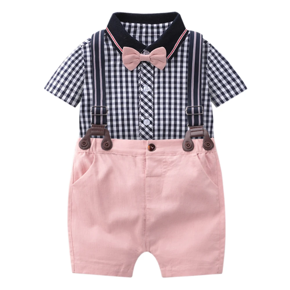 Наряд для маленьких мальчиков, одежда, Официальный красивый комбинезон для мальчиков в клетку, розовые комбинезоны, хлопковая одежда для маленьких мальчиков на день рождения