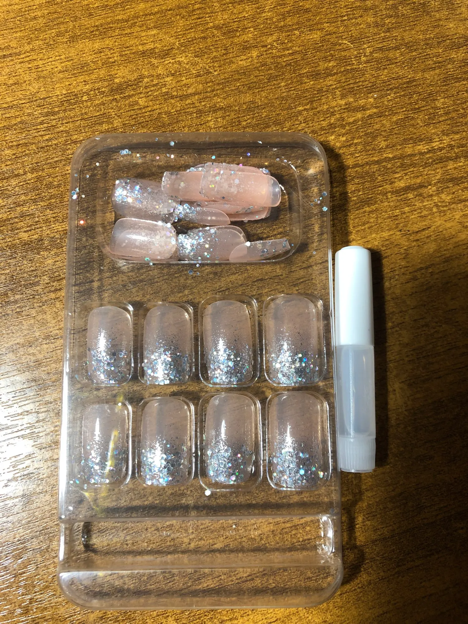 Шло достаточно долго, я думая это связи с напряжённой обстановке в мире. Ногти крутые , как на картинке.Блестки не отваливаются.В комплекте шёл клей. Для моей маленькой ногтевой пластины все на удивление подошла, хотя местами пришлось подпиливать, но это мелочи .Советую.