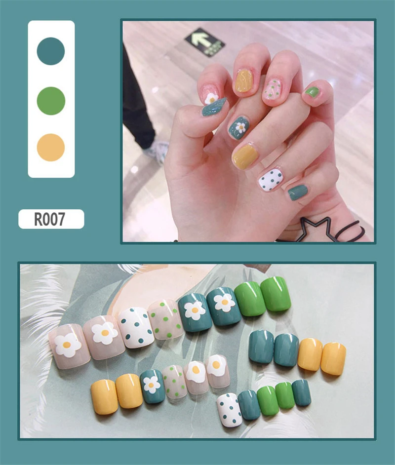 Накладные ногти для девочек, 24 шт.компл., летние накладные ногти с рисунком клубники, яичницы, накладные ногти с клеем