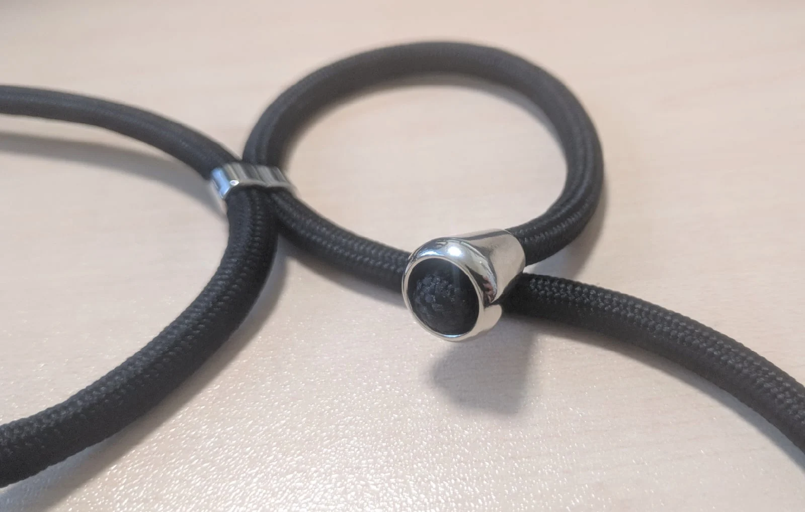 Шнур изготовлен из прочного нейлона, а застежка сделана из золотого цинкового сплава