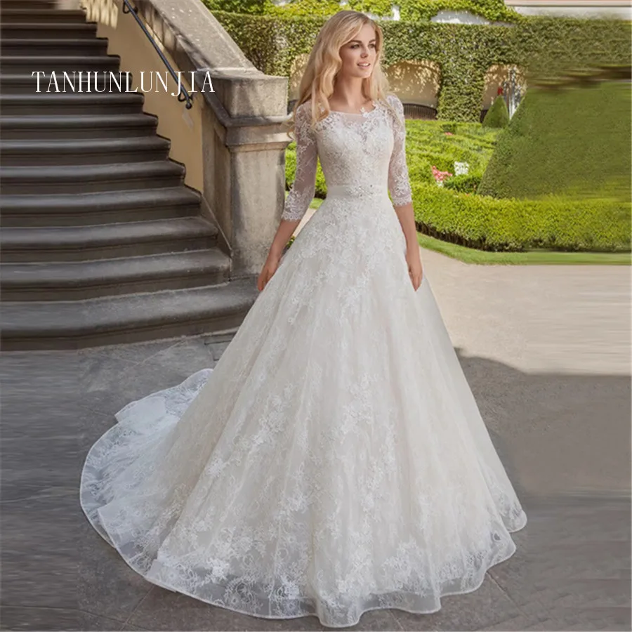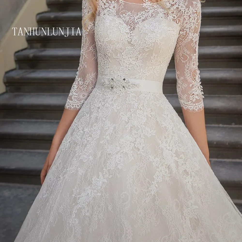 Очаровательное кружевное свадебное платье с рукавами и круглым вырезом, а-силуэт, свадебные платья принцессы, свадебное платье, свадебное платье, платье невесты с поясом