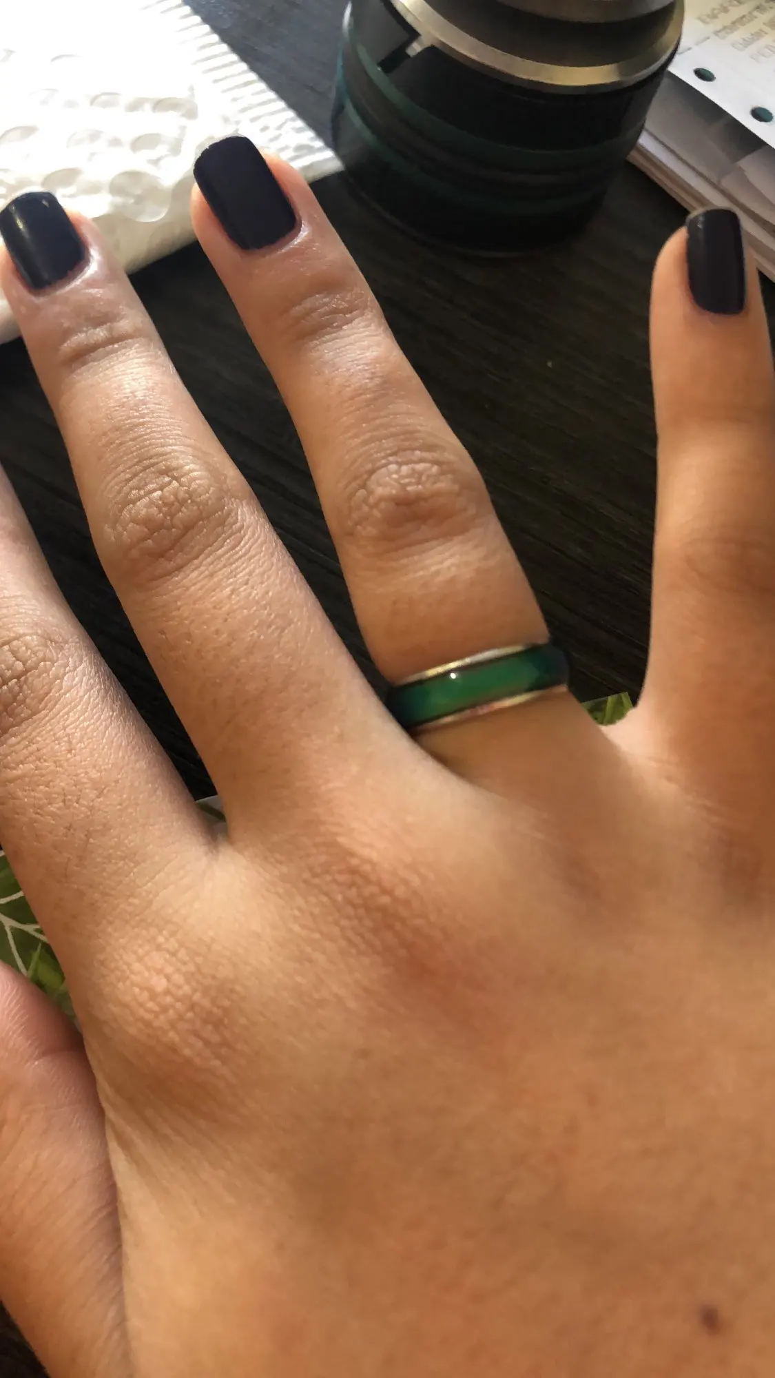 Хорошее кольцо, правда я не угадала с размером. Цвет меняет в зависимости от температуры, очень интересно