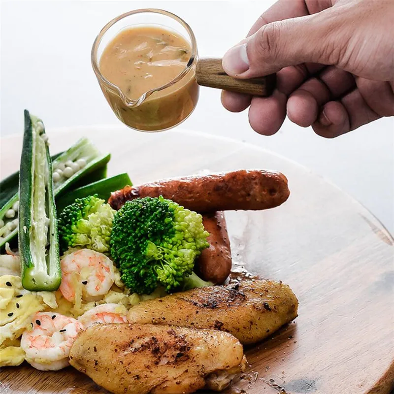 Многофункциональное блюдо для вкуса с деревянной ручкой, мини-чашка для кофе, молока, соуса, блюдо, стеклянная медовая закуска, стейк, соус, ведро, посуда