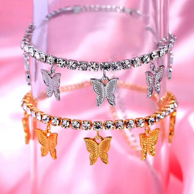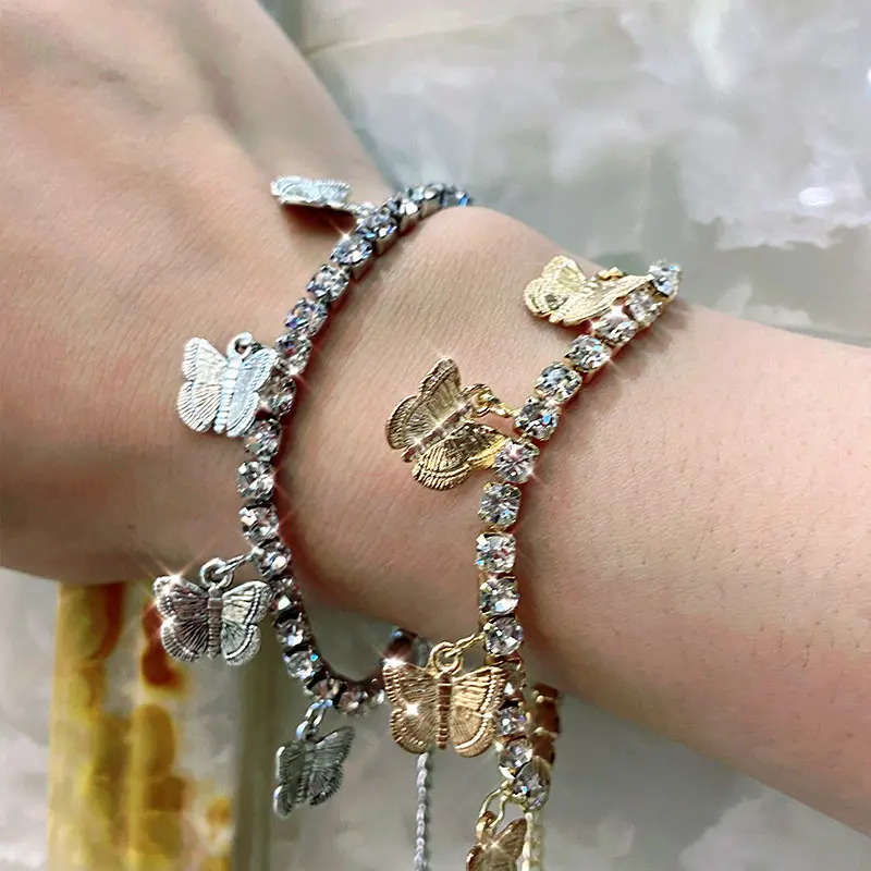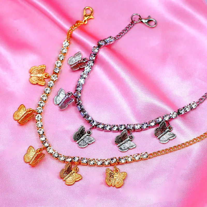 Женский блестящий браслет-цепочка Flatfoosie, золотистыйсеребристый браслет с подвеской в виде бабочки