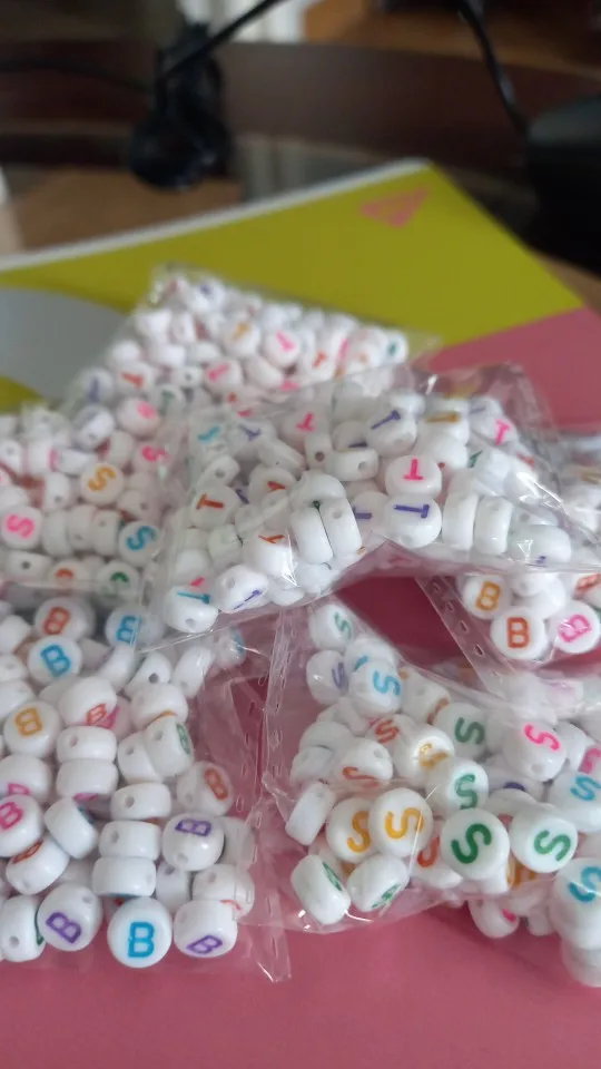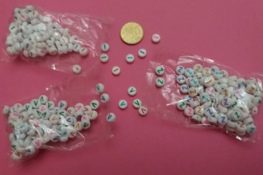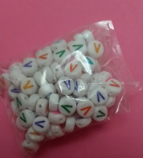 Круглые акриловые бусины с буквами алфавита, 7x4 мм, 100 шт.лот