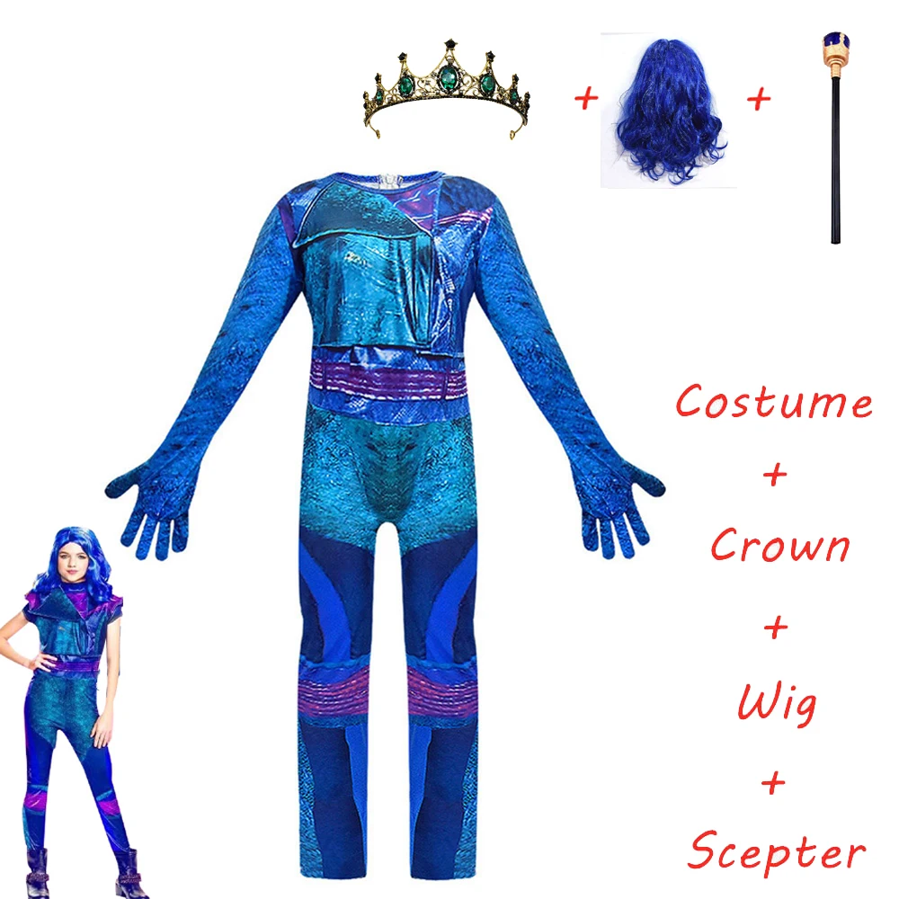 Лидер продаж; Детский костюм на Хэллоуин; Детский Anilnc изображением героев фильма наследники 3 Иви маскарадные костюмы для девочек, платье с париком Детский карнавальный вечерние комбинезоны