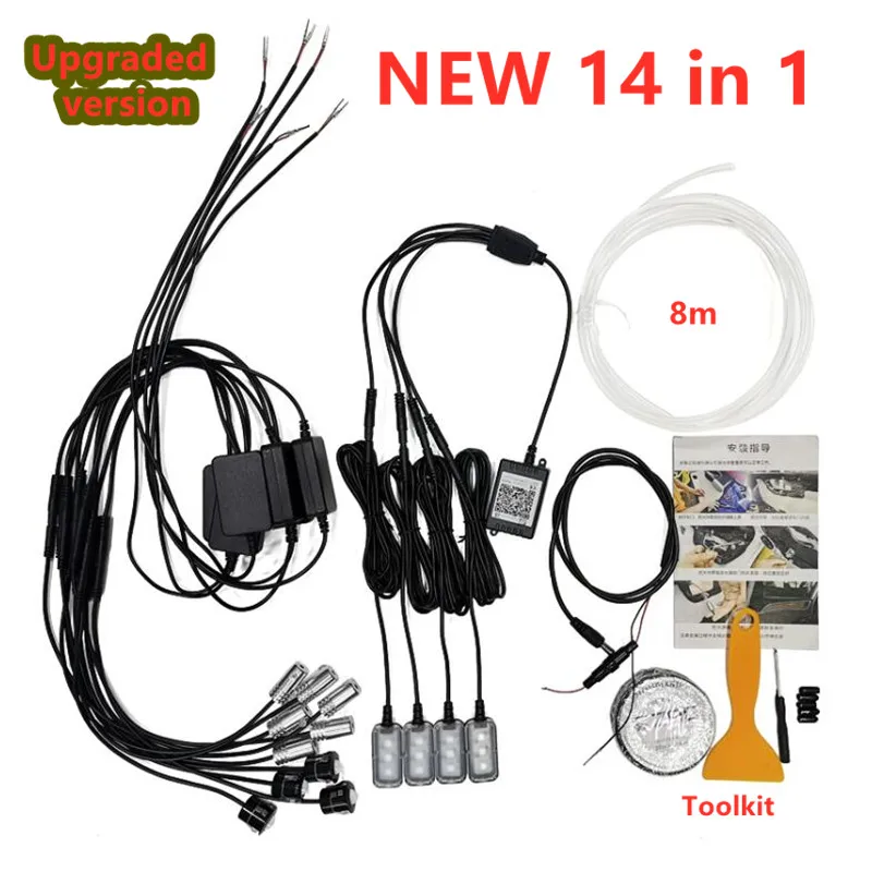 14 в 1 комплект окружающий светильник RGB волоконно-оптический светильник s цвета автомобильный Стайлинг декоративные атмосферные лампы Автомобильный интерьерный светильник управление приложением