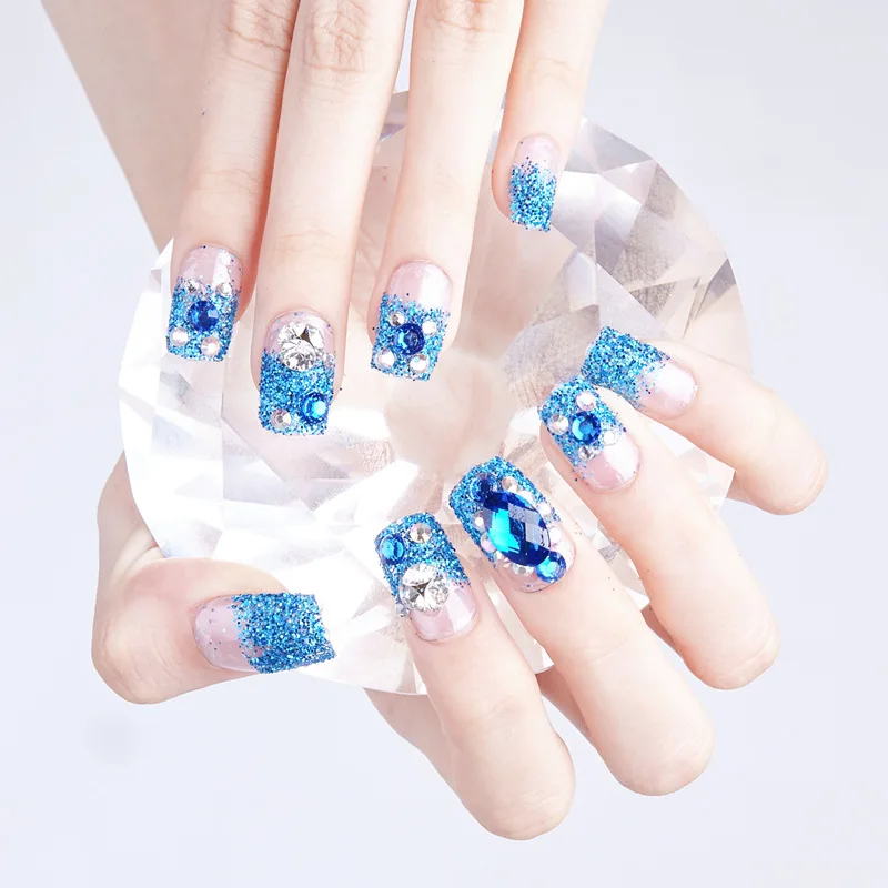 24 шт./компл. прозрачные блестящие накладные ногти квадратные Синие стразы наклейка полное покрытие ногтей Советы Ноготь невесты Аксессуары накладные ногти