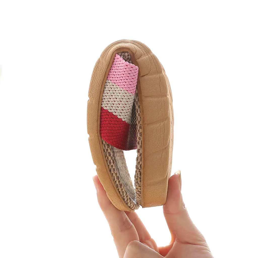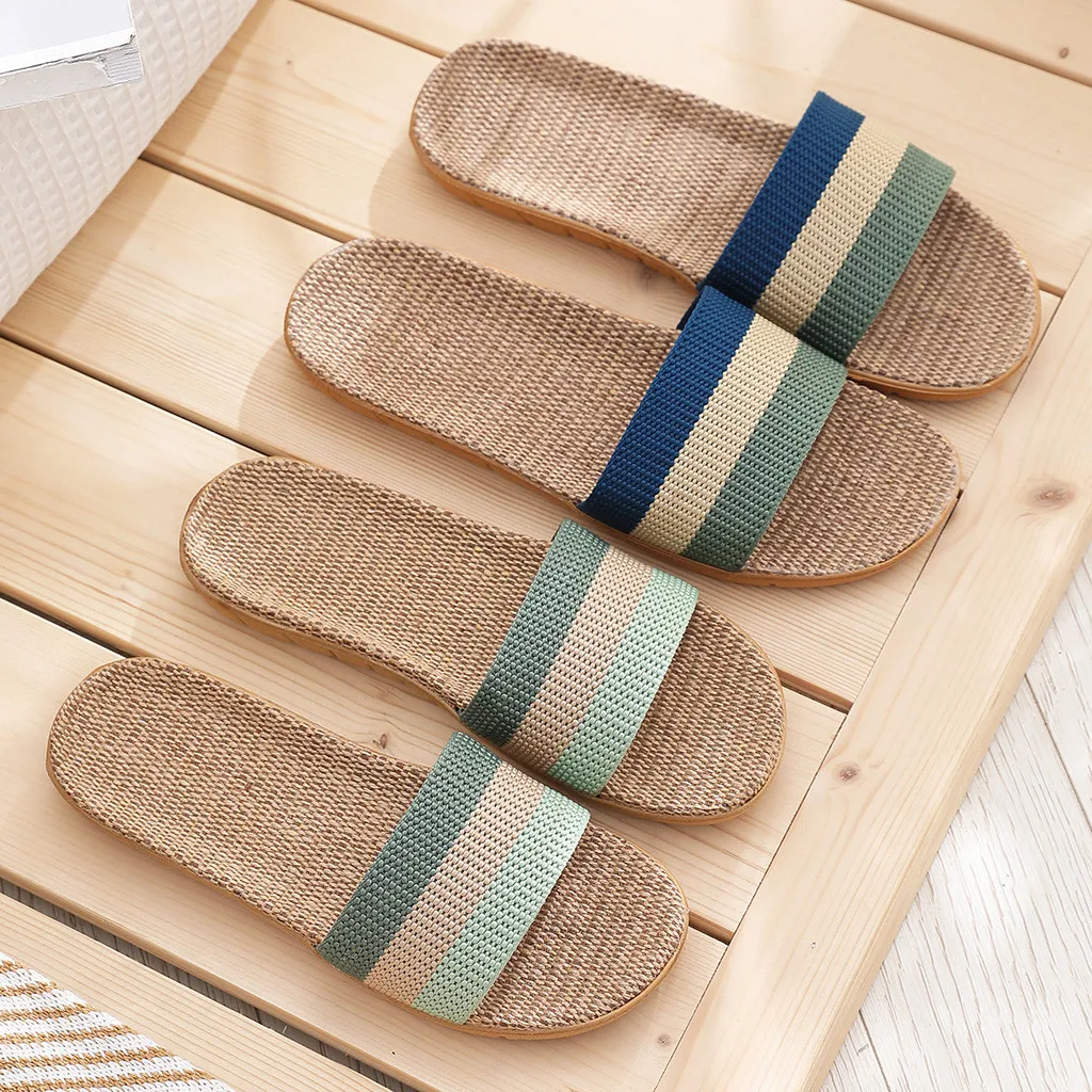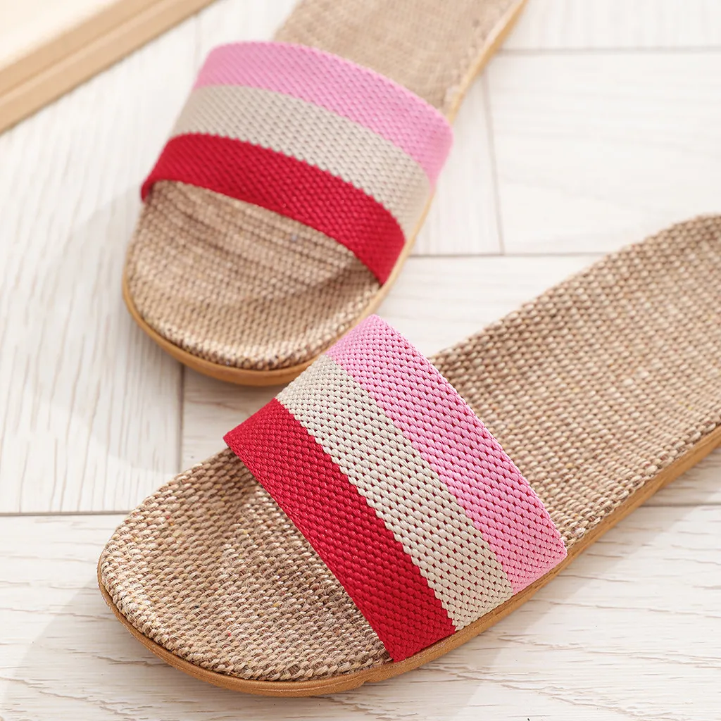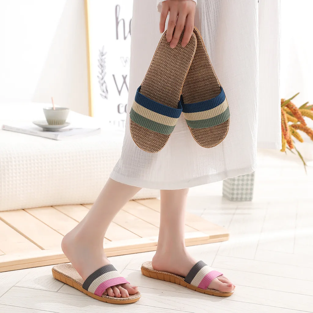 2020 летние льняные женские домашние тапочки, домашняя обувь, полосатые Лоскутные Тапочки для пар, модные женские пляжные тапочки # 0706LJC