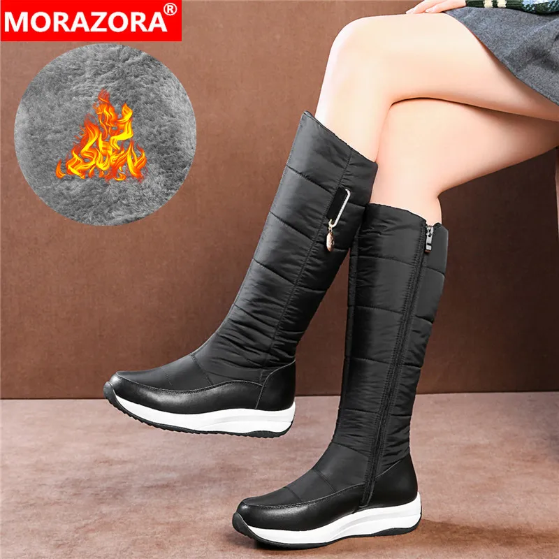 Женские сапоги из натуральной кожи MORAZORA, черные сапоги из натуральной кожи, на молнии, с толстой меховой подкладкой, теплые, зимние, размер 35-44