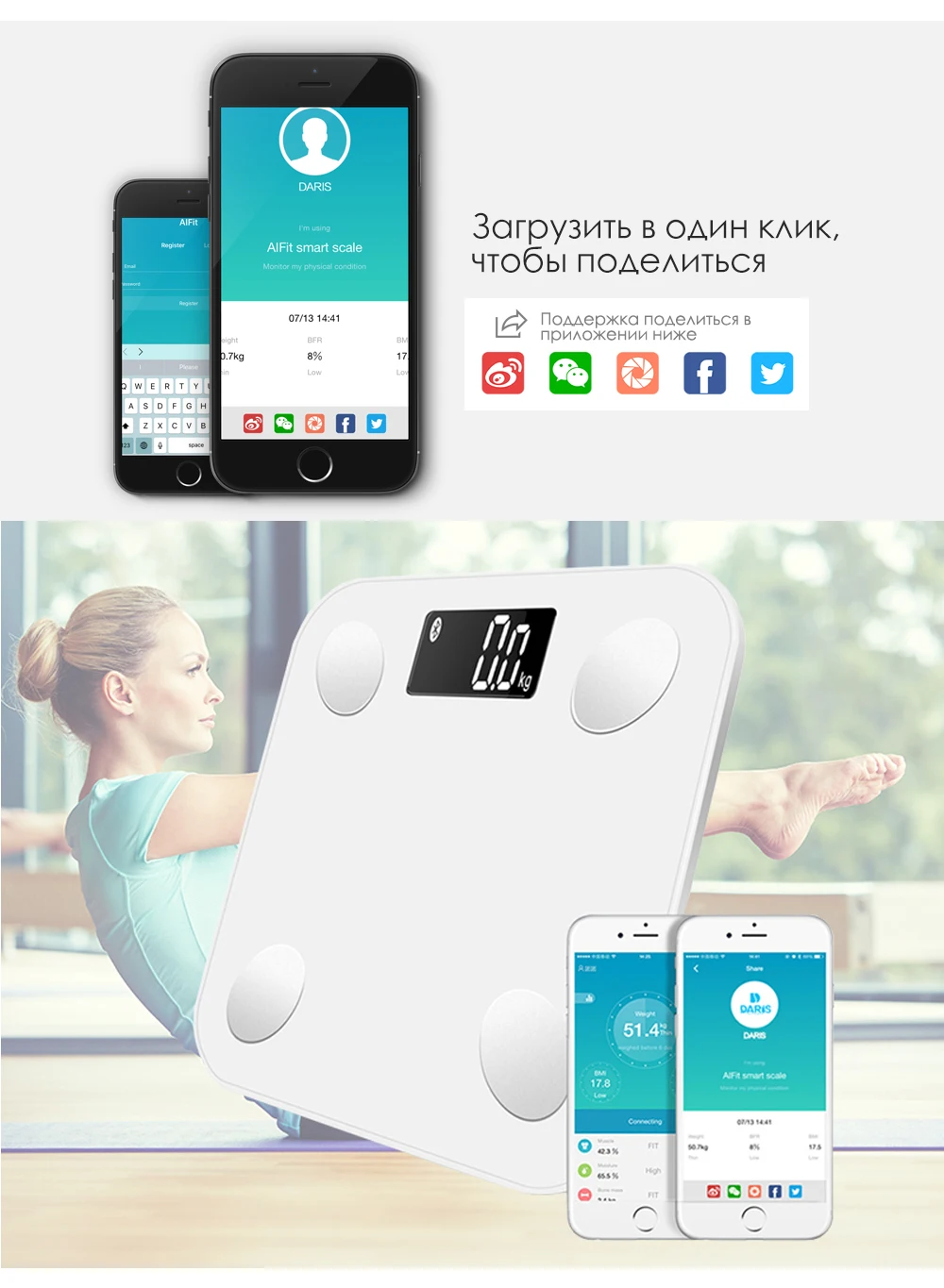 Умные Беспроводные цифровые весы для ванной с Bluetooth